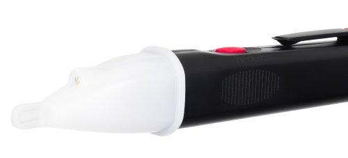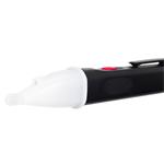 Tester napětí funguje bezkontaktně. Při detekci střídavého napětí od 12 do 48 V se ozve hluboký tón a LED indikátor se rozbliká. Pokud je napětí vyšší (od 48 do 1000 V), změní se zvuk ve vysoký tón a LED indikátor svítí. Ovládání testeru je tedy jednoduché.