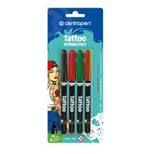 Popisovač na kůži • dermatologicky testovaný inkoust • z kůže smývatelný mýdlem a vodou • samolepicí šablony s 16 motivy • tetování vydrží až 60 hodin • válcový hrot • šířka stopy 1mm