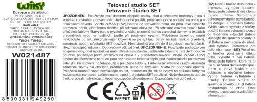 Tetovací studio set. Obsah balení - sada 8 šablon, 7 fixů, elektrické tetovací pero. Fixy jsou omyvatelné. Pero - 2xAAA, nejsou součástí.