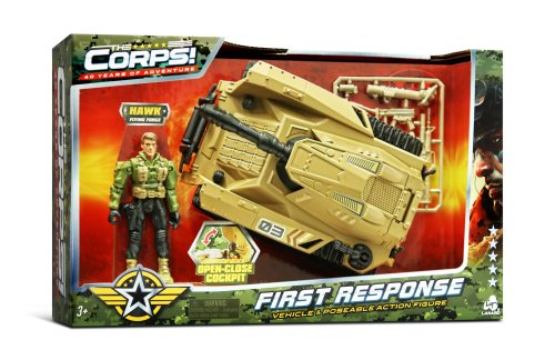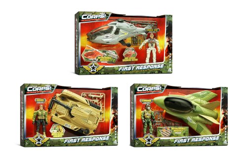 The Corps! Útočná jednotka set. Balení obsahuje 1 vojenský útočný stroj a 1 figurku vojáka. Velikost stroje 22 cm. Velikost figurky 10,5 cm. 3 varianty - tank, helikoptéra, stíhačka.