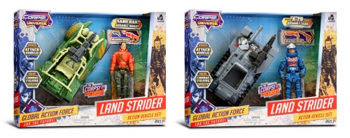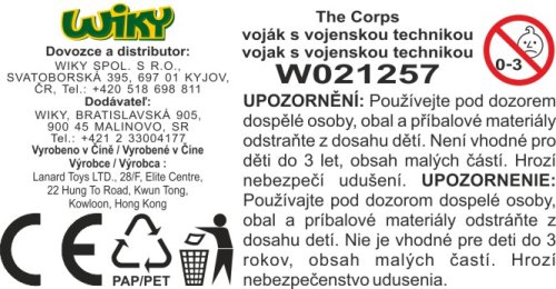 The Corps voják s vojenskou technikou. Velikost vozidla 14 cm, vojáka 10 cm. 2 varianty - čtyřkolka, pásové.