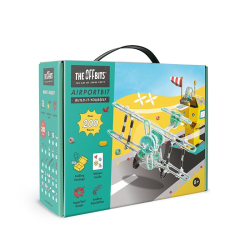 Sestavte PlaneBit a MarshalBit z matiček a šroubků a proměňte karton OffBits v letiště plné možností. Vytvořte řídicí věž a přistávací dráhu z kartonu a samolepkek. Nyní jste připraveni ke startu. Sada obsahuje více než 200 barevných matic, šroubů, tvarovaných kousků, samolepek a naše víceúčelové balení s nulovým odpadem, které se promění v součást herního zážitku a stane se letištěm. Popusťte uzdu své fantazii. Tato sada umožňuje vytvoření čtyř modelů s dalšími nekonečnými možnostmi pro vaše vlastní kreativní nápady. Jedná se o hračku, která pomáhá mladým lidem růst v oblastech vědy, technologie, inženýrství, umění a matematiky. Hračky OffBits také podporují rozvoj jemné motoriky, prostorové představivosti, řešení problémů a nápadité hry. Co můžete postavit:PlaneBit, MarshalBit plus nekonečné množství jedinečných výtvorů, které můžete postavit pomocí své fantazie. Máte kolem sebe karton, šroubky nebo jiné zábavné materiály? Vylepšujte s předměty každodenní potřeby a vytvořte také své vlastní jedinečné vynálezy. Hlavní vlastnosti: obsahuje nářadí pro sestavení stavebnicekompatibilnost s každodenními předmětyrozvoj kreativity, jemné motoriky i logického myšlenívhodné od osmi letvíce než 200 dílůobal je součástí herního zážitku