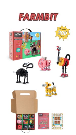 Zasejte semínka, vypěstujte je a nechť se zvířata pasou! Vybudujte si prosperující zemědělskou půdu s FarmBit, která obsahuje více než 200 barevných matic, šroubů, tvarovaných kousků, samolepek a naše víceúčelové balení s nulovým odpadem, které se promění v součást herního zážitku a stane se z něj farma a stáj. Popusťte uzdu své fantazii. Tato sada umožňuje vytvoření tří modelů s dalšími nekonečnými možnostmi pro vaše vlastní kreativní nápady. Jedná se o hračku, která pomáhá mladým lidem růst v oblastech vědy, technologie, inženýrství, umění a matematiky. Hračky OffBits také podporují rozvoj jemné motoriky, prostorové představivosti, řešení problémů a nápadité hry. Co můžete postavit:Farm animals PigBit, CollieBit, RoosterBit and HorseBit plus nekonečné množství jedinečných výtvorů, které můžete postavit pomocí své fantazie. Máte kolem sebe karton, šroubky nebo jiné zábavné materiály? Vylepšujte s předměty každodenní potřeby a vytvořte také své vlastní jedinečné vynálezy. Hlavní vlastnosti: obsahuje nářadí pro sestavení stavebnicekompatibilnost s každodenními předmětyrozvoj kreativity, jemné motoriky i logického myšlenívhodné od šesti letvíce než 200 dílůobal je součástí herního zážitku