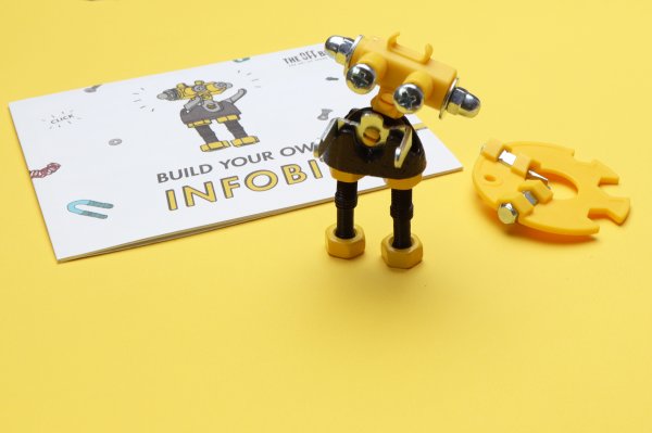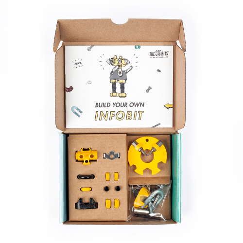 Seznamte se s InfoBitem, zvědavým čtenářem, který se rád učí. Tento robot se sortimentem barevných matic, šroubů a tvarovaných dílů je encyklopedií znalostí. Popusťte uzdu své fantazii. Tato sada umožňuje vytvoření tří modelů s dalšími nekonečnými možnostmi pro vaše vlastní kreativní nápady. Jedná se o hračku, která pomáhá mladým lidem růst v oblastech vědy, technologie, inženýrství, umění a matematiky. Hračky OffBits také podporují rozvoj jemné motoriky, prostorové představivosti, řešení problémů a nápadité hry. Co můžete postavit:Robota infoBit, kuřátkoBit nebo štěněBit plus nekonečné množství jedinečných výtvorů, které můžete postavit pomocí své fantazie. Máte kolem sebe karton, šroubky nebo jiné zábavné materiály? Vylepšujte s předměty každodenní potřeby a vytvořte také své vlastní jedinečné vynálezy. Hlavní vlastnosti: obsahuje nářadí pro sestavení stavebnicekompatibilnost s každodenními předmětyrozvoj kreativity, jemné motoriky i logického myšlenívhodné od šesti let3 v 1návod je součástí
