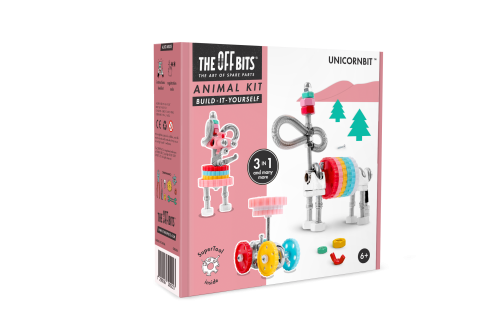 Je to váš šťastný den! JednorožecBit je vzácný a magický tvor. Tento supervýkonný hřebec, který obsahuje řadu barevných matic, šroubů a tvarovaných bitů, ovládá čarodějnictví, aby udržoval všechny OffBits v bezpečí. Popusťte uzdu své fantazii. Tato sada umožňuje vytvoření tří modelů s dalšími nekonečnými možnostmi pro vaše vlastní kreativní nápady. Jedná se o hračku, která pomáhá mladým lidem růst v oblastech vědy, technologie, inženýrství, umění a matematiky. Hračky OffBits také podporují rozvoj jemné motoriky, prostorové představivosti, řešení problémů a nápadité hry. Co můžete postavit:JednorožeceBit, pohádkového robotaBit nebo autoBit plus nekonečné množství jedinečných výtvorů, které můžete postavit pomocí své fantazie. Máte kolem sebe karton, šroubky nebo jiné zábavné materiály? Vylepšujte s předměty každodenní potřeby a vytvořte také své vlastní jedinečné vynálezy. Hlavní vlastnosti: obsahuje nářadí pro sestavení stavebnicekompatibilnost s každodenními předmětyrozvoj kreativity, jemné motoriky i logického myšlenívhodné od šesti let3 v 1 Ilustrační foto balení: