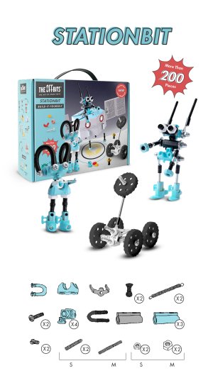 Postavte mezihvězdnou vesmírnou stanici! Prozkoumejte blízké i vzdálené planety se StationBit, který obsahuje více než 200 barevných matic, šroubů, tvarovaných kousků, samolepek a víceúčelové balení s nulovým odpadem, které se promění v součást herního zážitku a stane se vesmírným modulem. Popusťte uzdu své fantazii. Tato sada umožňuje vytvoření tří modelů s dalšími nekonečnými možnostmi pro vaše vlastní kreativní nápady. Jedná se o hračku, která pomáhá mladým lidem růst v oblastech vědy, technologie, inženýrství, umění a matematiky. Hračky OffBits také podporují rozvoj jemné motoriky, prostorové představivosti, řešení problémů a nápadité hry. Co můžete postavit:Astronauty SaturnBit, DroidBit a RoverBit plus nekonečné množství jedinečných výtvorů, které můžete postavit pomocí své fantazie. Máte kolem sebe karton, šroubky nebo jiné zábavné materiály? Vylepšujte s předměty každodenní potřeby a vytvořte také své vlastní jedinečné vynálezy. Hlavní vlastnosti: obsahuje nářadí pro sestavení stavebnicekompatibilnost s každodenními předmětyrozvoj kreativity, jemné motoriky i logického myšlenívhodné od osmi letvíce než 200 dílůvíceúčelové balení