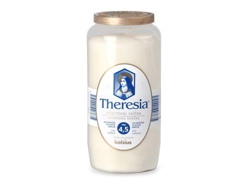 Kompozitní svíčka Theresia v bílé barvě, hoří až 4,5 dne.
