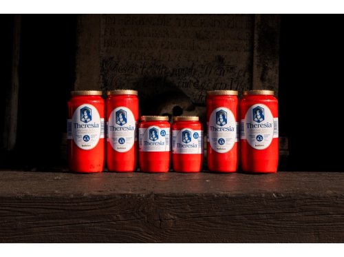 Kompozitní svíčka Theresia v červené barvě, hoří až 4,5 dne.