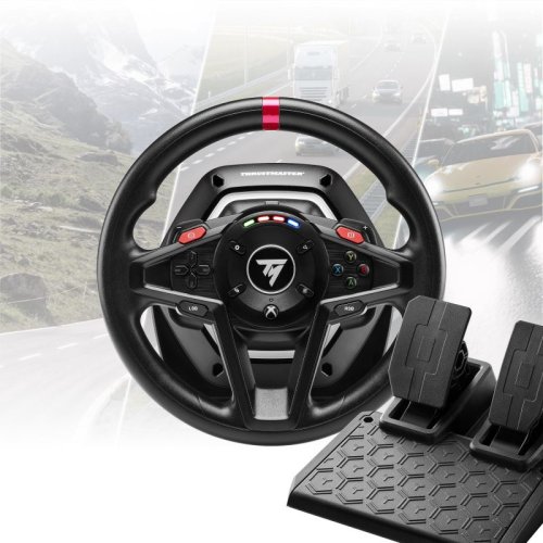 Závodní volant T128 s hybridní Force Feedback technologií a magnetickými řadicími pákami Úhel otáčení až 900°, vhodný pro různé typy her a vozidel TH8S Shifter Add-On s 8polohovou řadicí deskou ve tvaru „H" (7 rychlostních stupňů + zpátečka) Technologie H.E.A.R.T s magnetickými senzorypro dlouhotrvající přesnost Kompatibilní s PC (Windows 10/11), Xbox Series X|S, Xbox One