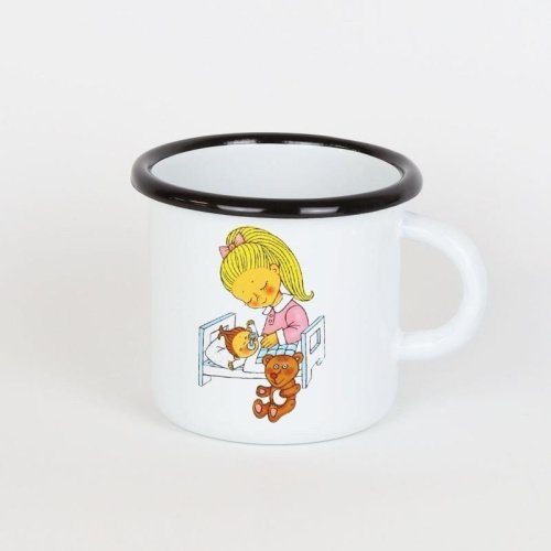 Knihy ilustrované Helenou Zmatlíkovou se jistě najdou v mnoha dětských knihovničkách. Teď můžete svým ratolestem pořídit také nádherný smaltový plechový hrneček s černým okrajem, který je lehký a odolný a ozdobený těmito úžasnými kresbami. Objem 300 ml, výška 8 cm.