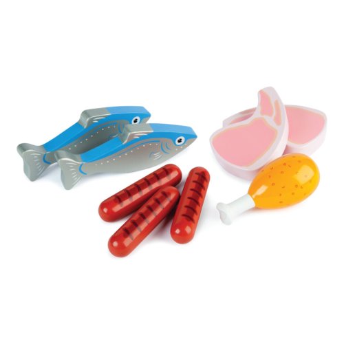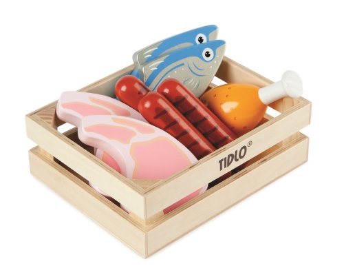 Čerstvá donáška masa a ryb v dřevěném boxu s rukojeťmi. Skvělá hračka pro hru na obchodníky nebo kuchaře, set obsahuje 2 ryby, 2 kotlety, 3 klobásy a 1 kuřecí stehno. Skvělý způsob, jak děti naučit o důležitosti zdravé a vyvážené stravy, také o tom, odkud jídlo pochází a jak jej připravit. Každý z dílků je zavalitý a ideální pro malé dětské ruce. Podporuje kreativní a představivou hru. Vyrobeno z kvalitních materiálů z odpovědných zdrojů. Odpovídá evropské bezpečnostní normě. Hlavní vlastnosti:•ideální tvar pro malé dětské ruce•podporuje kreativitu a představivost