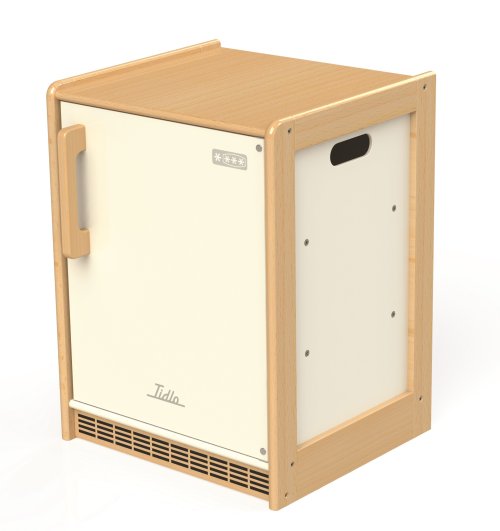 Nadšení mladí kuchaři mohou uložit všechno své předstírané jídlo do této krásné, dřevěné lednice. Toto zařízení obsahuje zvenku detailní ventilaci a uvnitř skladovací police. Robustní lednice má přední, lehce otevíratelné dveře s magnetickým páskem, aby zůstaly pevně zavřené a jídlo se nezkazilo! Skvělý způsob jak děti naučit o jídle, které do lednice ukládáme a proč. Na boku má rukojeti k lehčímu uchopení. Podporuje kreativní a představivou hru. Kombinujte s ostatními Tidlo kuchyňskými spotřebičemi a vytvořte hravou kuchyň! Po vybalení je nutno složit. Vyrobeno z kvalitních materiálů z odpovědných zdrojů. Odpovídá evropské bezpečnostní normě. Hlavní vlastnosti: otevíratelné dveře s magnetickým páskemboční rukojeti k lehčímu uchopenípodporuje kreativitu a představivost