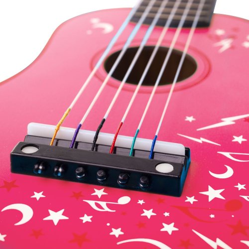 Klasická dřevěná akustická kytara s šesti strunami může být naladěna jako pravá. Kytara má natažené nylonové struny, v balení s trsátkem na vybrnkávání. Je vyrobena z odolného dřeva a bude tak ideální první akustickou kytarou Vašeho dítěte – nastávajícího hudebníka. Děti si užijí zábavu, když budou předvádět koncert své oblíbené rockové nebo popové hvězdy, bude to show pro celou rodinu! Krásná modrá kytara s hvězdami je velká tak akorát pro dětské ruce. Děti se díky ní naučí rytmu a časování. Podporuje senzorickou a kreativní hru. Tuto hračku nelze pokládat za hudební nástroj. Hlavní vlastnosti: Akustická kytara s šesti strunami Nylonové struny i trsátko Učí rytmus a časování podporuje senzorickou a kreativní hruOdpovídá evropské bezpečnostní normě. Vyrobeno z kvalitních materiálů z odpovědných zdrojů