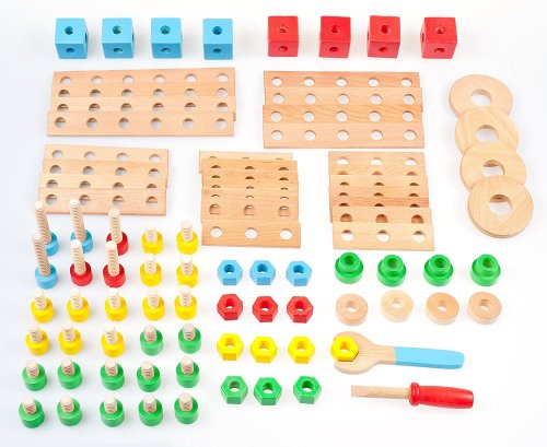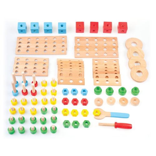Děti s představivostí si s touto stavebnicí užijí mnoho zábavy. Tato 91 dílná sada obsahuje nářadí, barevné šrouby, matice, kostky a destičky. To vše mohou děti spojit a postavit složité výtvory. Postav, sešroubuj, utáhni! Děti mohou přiloženým šroubovákem a klíčem dotáhnout šrouby a postavit kreace dle jejich gusta. Co asi postaví Vaše dítko? Stavebnici je jednoduché složit a opět rozložit, v balení také naleznete leták s návodem a příklady modelů, kterými můžete začít. Podporuje děti v kreativní a představivé hře. Rozvíjí koordinaci ruka-oko, jemnou motoriku a zručnost. Vyrobeno z kvalitních materiálů z odpovědných zdrojů. Odpovídá evropské bezpečnostní normě. Hlavní vlastnosti: 91 dílůbarevnostjednoduché složení i rozloženínávod s příkladypodporuje kreativitu a představivostrozvíjí jemnou motoriku a zručnost