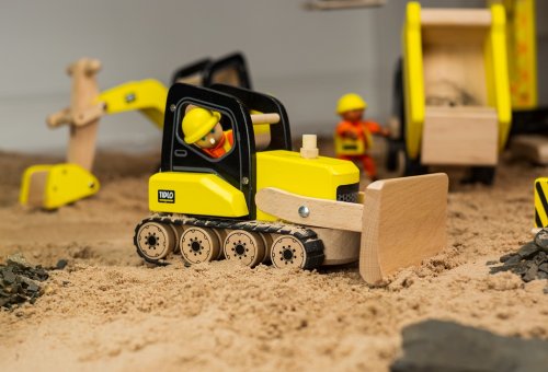 Tento masivní, detailní, dřevěný bagr se otáčí o plných 360° a děti tak mohou plně funkční lžící nabírat ve všech směrech. Bagr má dokonce i funkční pásový pohon, velmi se tak přibližuje reálnému vozidlu. Má zaoblené tvary, a je celkově navržen tak, aby byl jednoduše uchopitelný malýma dětskýma rukama. Je s vrchu otevřený a tak se do něj dají jednoduše vložit figurky stavitelů. Podporuje kreativitu a představivost, rozvíjí koordinaci ruka-oko a jemnou motoriku. Vyrobeno z kvalitních materiálů z odpovědných zdrojů. Odpovídá evropské bezpečnostní normě. Hlavní vlastnosti: otáčí se o 360°funkční pásový pohonjednoduše uchopitelnýpodporuje kreativitu a představivostjednoduché vložení figurek stavitelů