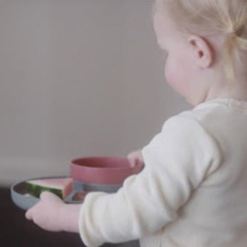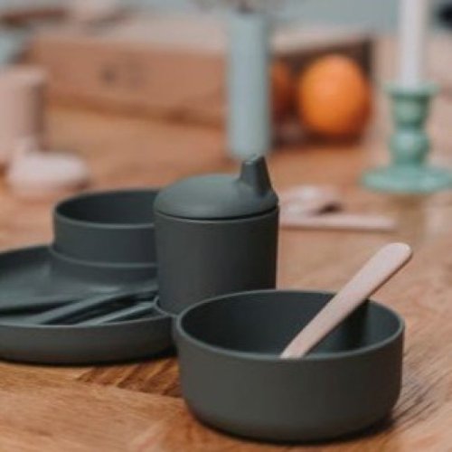 Dárková jídelní sada vyrobená z recyklovatelného bioplastu.