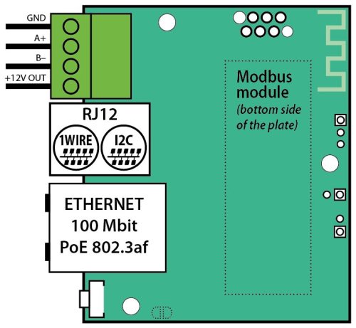 Rozhraní: RS-485 Modbus RTU, I2C/1-Wire, Ethernet 10/100 Mbit/s, Wi-Fi 802.11n