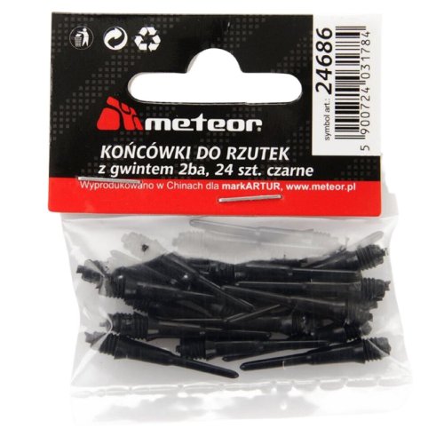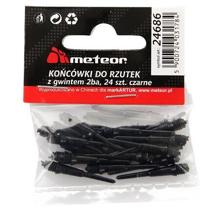 Náhradní plastové hroty Meteor Tips v balení po 24 kusech jsou určené pro šipky k elektronickým terčům. Nepostradatelný doplněk v menším balení pro každého hráče šipek. Hroty mají průměr 4 mm a délku 3 cm. Náhradní plastové hroty Meteor nabízíme v černé nebo bílé barvě.