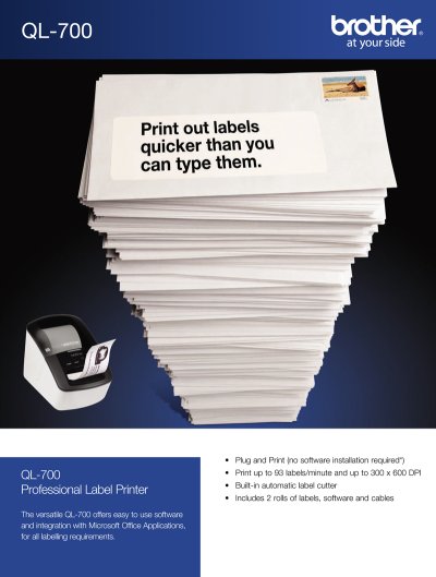 role. Brother QL-700 umožňuje tisk ve vyšším