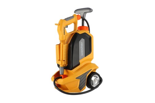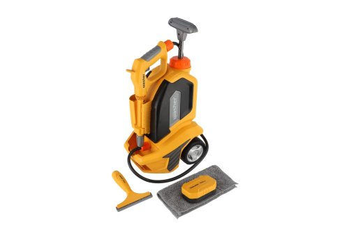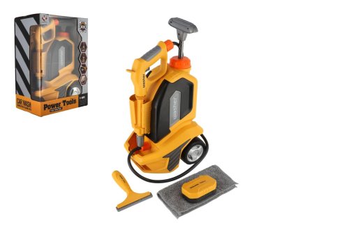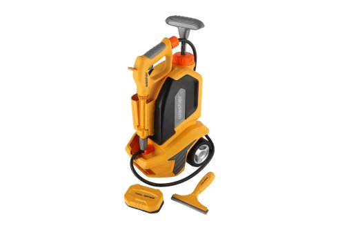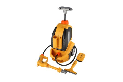 Tato dětská vysokotlaká myčka je skvělou hračkou pro malé pomocníky, kteří rádi napodobují práci dospělých. Naplňte zásobník vodou, vytvořte tlak pomocí pumpičky, zmáčkněte pistol, ze které začne stříkat voda. Upravovat proud můžete pomocí otočného krytu nakonci hadice. Díky kolečkům a rukojeti je snadné vapku kamkoli přemístit. Součástí balení: Tlakový čistič, houbička, stěrka a hadřík. Velikost vapky: 23 x 35 cm Rozměr balení: 26 x 38 x 17 cm Vhodné pro děti od 3 let