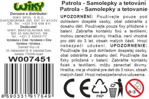 Tlapková patrola vybarvovací samolepky a tetování. Kolekce samolepek a tetovaček. Obsahuje 6 barevných fixů. Některá tetování a samolepky jsou již barevně vytištěné. černobílé samolepky a tetovaní si můžete vymalovat sami pomocí přiložených fixů. Aplikace tetování - sloupněte ochranou fólii z obrázku, vybarvěte, přitiskněte na pokožku obrázkem dolů a přiložte navlhčenou houbičku na nádobí nebo hadřík.