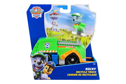 Tlapková patrola vyráží do akce ve svých záchranných vozidlech! Přidejte se k Rockymu na akcí nabité mise s jeho popelářským vozem! Když nastanou potíže, připněte Rockyho nohy na sedadlo řidiče a vyrazte na pomoc se skutečně funkčními koly, pohyblivým vysokozdvižným vozíkem a poklopem! Milované policejní štěně z Tlapkové patroly a jeho vozidlo s autentickými detaily a realistickými prvky přináší úžasnou Tlapkovou patrolu k životu. Rocky a jeho vozidlo jsou vyrobené s ohledem na životní prostředí a jsou minimálně z 80 % z recyklovaného plastu! Spojte se s ostatními tlapkami a jejich záchrannými vozidly (prodávají se zvlášť) a pomozte zachránit den v Adventure Bay! Hračky Tlapková patrola pro předškoláky a vzdělávací hračky pro batolata jsou dárky pro děti, které jsou fanoušky seriálu, podporují nápaditost při hraní a vylepšují jemné motorické dovednosti. Hrdinové z Tlapkové patroly a k nim patřící autíčka vám umožní znovu prožít vaše oblíbené okamžiky z různých dobrodružství Tlapkové patroly, jako jsou Mocné tlapky a Tlapková patrola ve filmu, nebo si vytvořit svá vlastní dobrodružství (prodávají se zvlášť). Užijte si dlouhé hodiny zábavy a vydejte se na dobrodružství inspirované seriálem Tlapková patrola s kompletními sadami týmu akčních štěňat a leteckých záchranářů, které zahrnují vozidla Tlapkové patroly, akční figurky a hračky pro batolata!