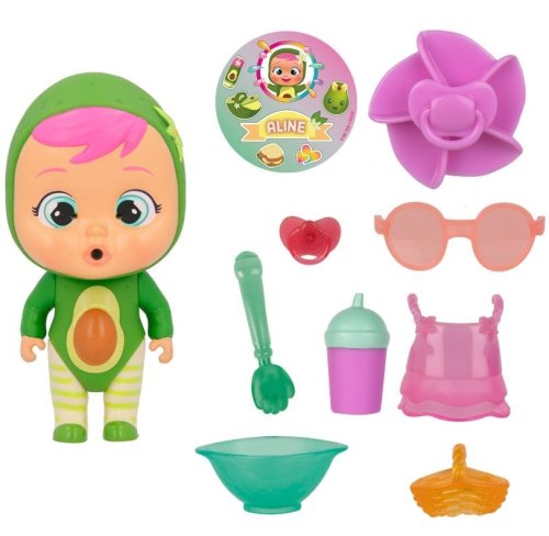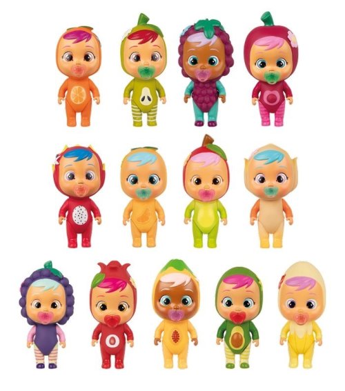 Je tu nová řada voňavých sběratelských panenek, které potřebují péči a lásku každé holčičky! Panenky roní barevné slzy. Pláč zastavíte dudlíkem. Tutti Frutti panenky jsou zcela nové postavičky v jedinečných oblečcích s motivem ovoce, které i voní. Panenky jsou zabaleny v domečku ve tvaru shakeru. Sada obsahuje: j ednu z 12 nových voňavých panenek: Aline, Claire, Gaby, Grana, Rina, Gala, Mori, Grace, Pamela, Peyton, Tati, Angie a doplňky jako jsou brýle, bryndáček, dudlík, miska, lžíce, láhev.. Panenka má měkké gumové tělíčko, ohebné ruce a nohy. Když ji napojíte z lahvičky a stisknete bříško, sledujte jak roní opravdové slzy. Vodu můžete také doplnit otvorem v hlavičce.