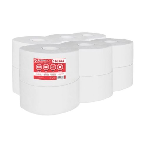 Toaletní papír PrimaSOFT JUMBO 190, 100 m 2vrstvý Celulóza Barva bílá Průměr dutinky 6 cm V balení 12 rolí