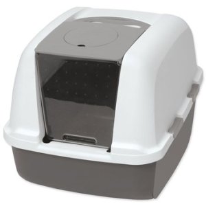 Prostorná plastová toaleta s krytem a dvířky pro kočky v moderním designu. V krytu toalety je umístěný pachový filtr, díky němuž můžete mít toaletu umístěnu kděkoli v bytě a nebude Vás obtěžovat pach z toalety. Velké rozměry wc jsou ideální pro velká plemena koček nebo pro více menších koček.