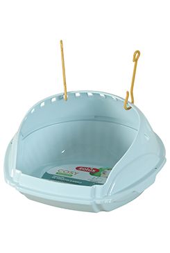 Záchod je vybaven háčkem pro zavěšení, díky kterému jej lze snadno připevnit ke kleci nebo výběhu, a zároveň se zamezí jeho posouvání. Snadné čištění a údržba umožňují rychlé odstranění nečistot a udržení hygieny v chovu.