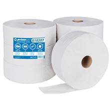 Dvouvrstvý Jumbo toaletní papír s ražbou vyrobený z běleného recyklu - bílá 75% Výška role 9 cm Průměr role 28 cm Návin role 250 m Velikost útržku 24x9 cm Průměr dutinky 6 cm Balení obsahuje 6 rolí Toaletní …
