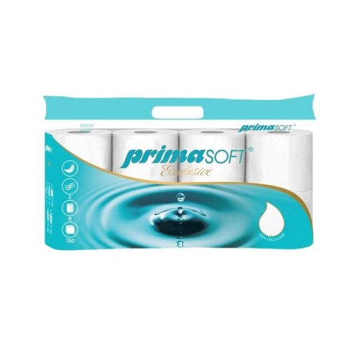 Toaletní papír PrimaSOFT - 3vrstvý, extra bílý 100% celulóza Návin 17,55 m Rozměr útržku 9x11,7 cm Průměr dutinky 4,7 cm Průměr role 9 cm Výška role 11,5 cm Počet útržků 150 Počet rolí 8