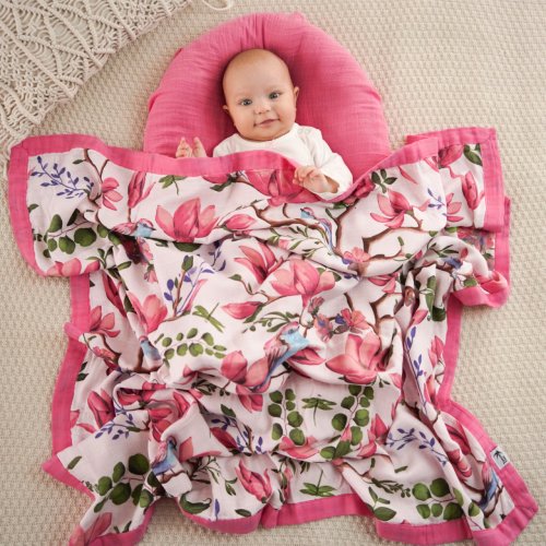Na světě není nic, co by se podobalo poslouchání zpěvu ptactva z krásného pohodlí v magnóliích. Vyrobeno ze 70% bambusu a 30% bavlny, tyto mušelínové dečky jsou jemné na dotek díky bambusu a zároveň chladí a jsou prodyšné díky bavlně. Čtyři prodyšné vrstvy a svěží design slibují komfort a dny plné radosti a smíchu. Jedinečnost našich deček spočívá v jejich originálním provedení a ve výrobě s láskou. Údržba: Jemné praní v pračce nebo ruční praní ve studené voděVelikost: 106x106 cmMateriál: 70 % bambus, 30 % bavlna Vhodné jako: přikrývka do kočárkuochrana při kojeníbryndák