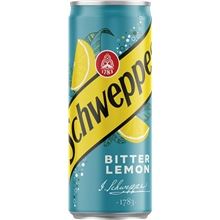 Tonic Schweppes Bitter - Lemon, limonáda se šťávou a extraktem z citronu Obsahuje chinin, cukr a sladidla Balení obsahuje 24x plechovku o objemu 0,33 l