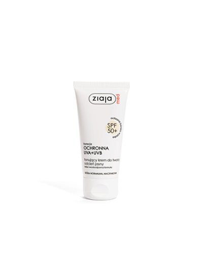 Tónovací pleťový krém s vysokou ochranou SPF 50+. Odstín světlý. PROBLÉM: Pokožka, která se snadno spálí nebo s pigmentovým zabarvením. DOPORUČENÍ: Pokožka normální, s rozšířenými žilkami, s hyperpigmentací. Doporučeno při dermatologické léčbě a po zákrocích estetické medicíny. Pro použití v extrémním slunečním počasí, a to i pro lidi, kteří se aktivně věnují sportu.PŮSOBENÍ: Zajišťuje velmi vysokou ochranu proti UVA a UVB záření. Zabraňuje podráždění sluncem. Chrání epidermální pigmentové skvrny - znaménka a pihy. Chrání pokožku před tvorbou zabarvení. Neutralizuje volné radikály, odpovědné za fotostárnutí. Vyrovnává a kryje nedokonalosti pleti. Navrací pokožce mladistvý vzhled.
