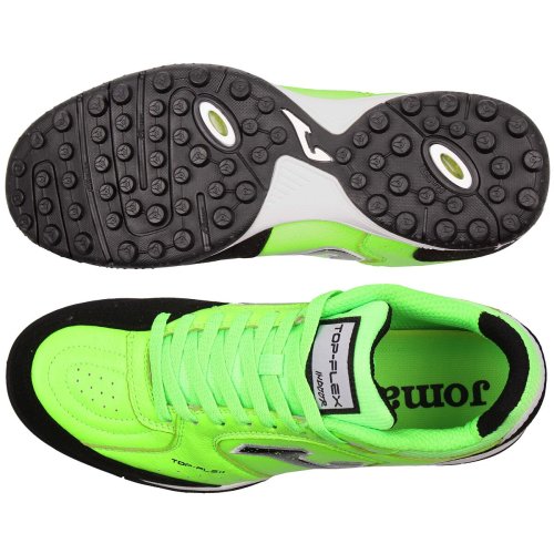 Turfy JOMA Top Flex 2411 jsou kopačky s výrazným vzorkem na podrážce, která tak lépe přilne k povrchu a pomáhá fotbalistovi udržovat optimální stabilitu. Tento model na umělé povrchy je navržený pro pravidelné hráče, kteří hledají vysoký výkon a stabilitu zároveň. Svršek je vyrobený z velmi pružné prémiové kůže, vysoce kvalitního nylonového vnitřku a s perforací VTS, která umožňuje cirkulaci vzduchu a zajišťuje tak správnou ventilaci. Má zesílenou špičku pro úder. Zpevněná špička nabízí dobrý kontakt s míčem. Phylonová mezipodešev poskytuje větší stabilitu a odpružení. Podešev je vyrobená z vysoce kvalitní pryže s odolností proti oděru DIN-70.