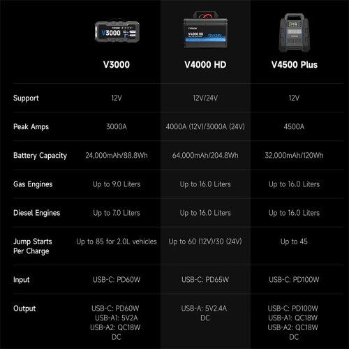 TOPDON V4000HD - profesionální 12V/24V startovací zdroj pro osobní a nákladní vozidla TOPDON V4000 HD je špičkový startovací zdroj navržený pro nestandartní podmínky. Tento profesionální model zvládá 12V i 24V systémy a je určen nejen pro osobní automobily, ale také pro nákladní vozy, autobusy, stavební techniku a těžká pracovní vozidla.