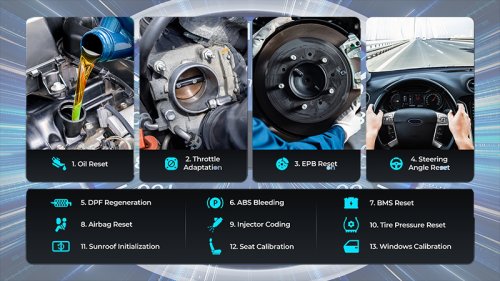 Bezproblémové obnovení provozu vašeho vozu Všimli jste si kontrolky údržby? Nebojte se - naše funkce resetování oleje vám kryje záda! TopScan Pro hrdě představuje komplexní sadu 13 funkcí resetování: Reset oleje, přizpůsobení plynu, reset EPB, reset úhlu řízení a další. . Diagnostikujte své vozidlo, vyřešte výstražné kontrolky.