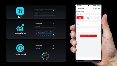 Co ještě umí TopScan Pro? Zobrazení datových toků ve formě textu, grafu nebo grafu podobného přístrojovému panelu. To pomáhá uživatelům intuitivně sledovat změny dat v čase. Použití funkce "Kombinovat" pro grafické zobrazení až 4 datových toků v jednom rozhraní umožňuje uživatelům vyhodnocovat výkonnost pomocí srovnávacích dat a dělat přesná a efektivní rozhodnutí.