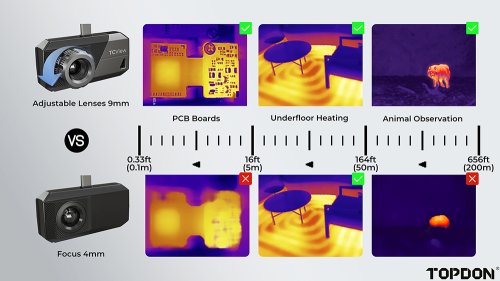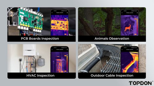 TOPDON termální infra kamera TS001 Termokamera TS001 s dlouhým ohniskem pro systém Android byla navržena pro zachycení ostrých snímků i na velmi krátké vzdálenosti, například při inspekci desek plošných spojů. Díky infračervenému snímači s vysokým rozlišením 256 × 192 pixelů a plynulé snímkové frekvenci 25 Hz dokáže precizně zachytit každý detail. Nastavitelný 9mm objektiv umožňuje pokrytí vzdáleností od 0,1 do 500 metrů, což zajišťuje širokou škálu využití, včetně inspekcí budov, pozorování zvířat, oprav automobilů nebo kontroly desek plošných spojů.