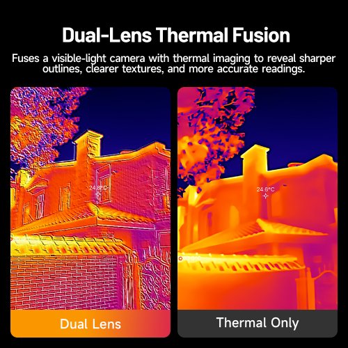 Díky technologii TISR je termální obraz vylepšen až na 512 × 384 px, což přináší ostřejší a přehlednější zobrazení. Kamera využívá duální snímání s 1,5MP kamerou ve viditelném spektru, funguje v režimu plug-and-play a je plně kompatibilní se zařízeními Android, iOS a Windows.