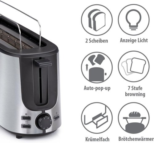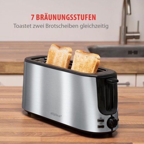 S toustovačem alpina si vychutnáte čerstvě opečený chléb obratem ruky. Tento toustovač nabízí 7 různých nastavení opečení, od světlé po tmavě hnědou, abyste mohli chléb opékat přesně tak, jak chcete. Toster má také praktickou funkci rozmrazování, pomocí které můžete zmrazený toast řádně rozmrazit, než ho opékáte. Tím se zabrání tomu, aby byl chléb kvůli příliš rychlému zahřátí tvrdý.