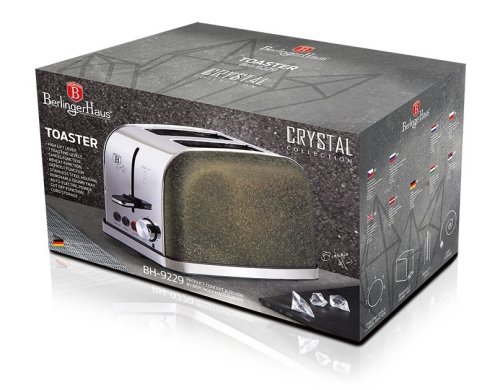 materiál: nerezová ocel - 7 stupňů nastavení intenzity opečení - automatické vysunutí pečiva - automatické centrování pro rovnoměrný ohřev tenkých i silných toastů - protiskluzová úprava spodní základny - funkce: - DEFROST / rozmrazování, rozpékání mraženého pečiva - REHEAT / opakovaný ohřev a dohřívání - CANCEL / okamžité přerušení provozu před koncem nastaveného času - funkce HIGH LIFT pro snadné vyjmutí malých kousků pečiva - vyjimatelná spodní část na odstranění drobků a díky tomu snadné čištění - příkon: 850 W - kolekce Crystal Collection
