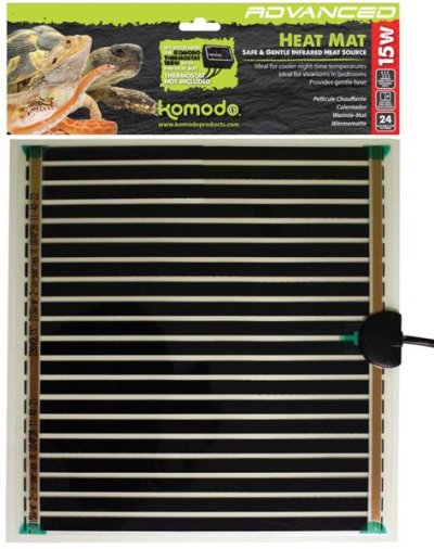 Výhřevná rohož Komodo Advanced Heat Mat vydává pro lidské oko neviditelné dlouhovlnně infračervené záření, které prohřívá zvířata a předměty v bezprostřední blízkosti rohože více než okolní vzduch. Díky mírnému teplu, jež vyzařuje, může sloužit jako vynikající primární zdroj tepla pro mnoho nočních druhů a bezobratlých nebo jako přídavný zdroj tepla pro denní druhy. Výhody: