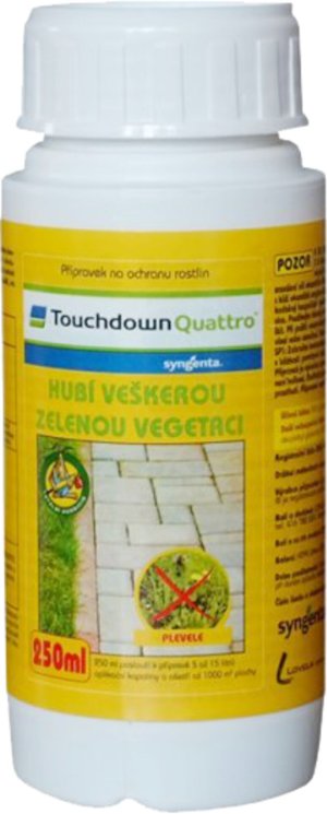 Touchdown Quattro obsahuje účinnou látku glyphosate, která je přijímaná listy. Přípravek působí neselektivně jako listový systematický herbicid proti širokému spektru jednoletých a víceletých plevelů včetně pýru plazivého, pcháče osetu a mléče rolního před setím nebo na strniště. Používá se v ovocných sadech, vinicích na orné i nezemědělské půdě.