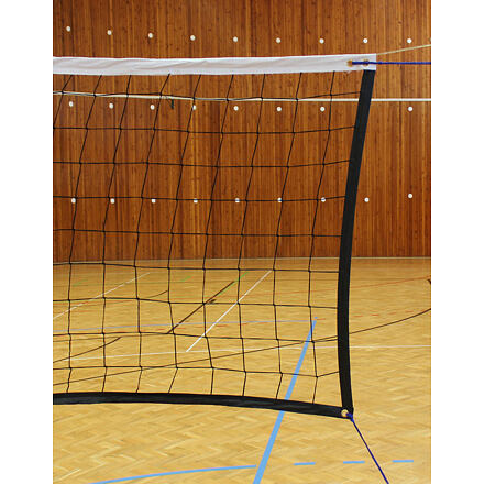 Volejbalová síť Tournament je vyrobená z 3 mm pleteného polypropylenu (PP) v klasickém černém provedení. Síť o rozměrech 9,50 x 1 m je vhodná pro venkovní i vnitřní volejbalová hřiště. Díky kvalitnímu zpracování sítě ji lze využít pro přátelská utkání, k mistrovským zápasům a turnajům. Vinylový pás o velikosti 5 cm tvoří horní, spodní a boční (4 cm) stranu sítě. K napnutí sítě slouží 5 mm lanko, které prochází horním pásem. Na každém rohu se nachází dvě očka s 3 mm stahovacími šňůrami k uchycení ke sloupku. Volejbalová síť je vhodná pro všechny výkonnostní úrovně hráčů. Parametry: rozměry: 9,50 x 1 m barva: černá materiál: polypropylen