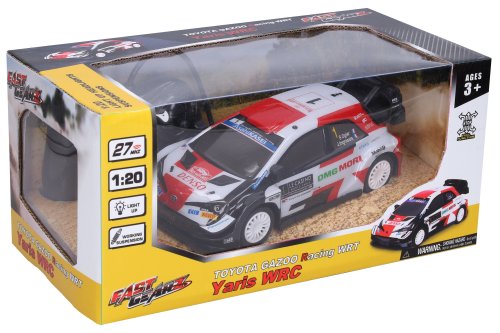 Toyota Yaris WRC RC na dálkové ovládání. Rozměry 20x9,5x7 cm. Frekvence 27 MHz. Světelné efekty. 3xAA do auta, 2xAA do ovladače nejsou součástí. Přepínač ON/OFF na spodní straně auta.