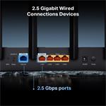 Wi-Fi typ: Wi-Fi 7 Wi-Fi standardy: 802.11g, 802.11n, 802.11ac, 802.11ax, 802.11be Pásma Wi-Fi: 2,4 GHz, 5 GHz Rychlost Wi-Fi na 2,4 GHz: 688 Mb/s Rychlost Wi-Fi na 5 GHz: 5764 Mb/s Maximální rychlostLAN portů: 1 Gbit Maximální rychlost WAN portu: 2,5 Gbit Frekvenční pásma: Dual-band Šifrování: WPA, WPA2, WPA3
