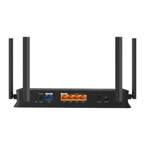 Hardwarové vlastnosti *Rozhraní: 1× 2.5GE WAN port, 1× 2.5GE LAN port, 3× Gigabit LAN porty, 1× USB 3.0 Port *Tlačítka: Zadní: Power, Reset, WPS, LED/Wi-Fi *Napájení: 12V/2A (v závislosti na verzi produktu) *Rozměry (Š×V×H): 268.6 × 153 × 47.6 mm