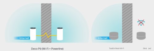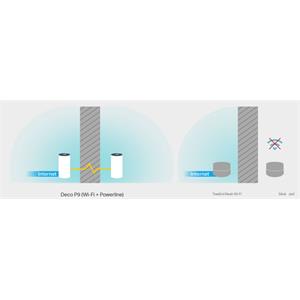 Deco P9 kombinuje duální Wi-Fi a powerline pro vytvoření silnější mesh sítě. Technologie Powerline využívá elektrické rozvody vašeho domu k vytvoření silnějšího propojení mezi jednotkami Deco tím, že snižuje dopad stěn a jiných překážek na signál a poskytuje ještě vyšší rychlosti sítě a skutečně bezproblémové pokrytí.